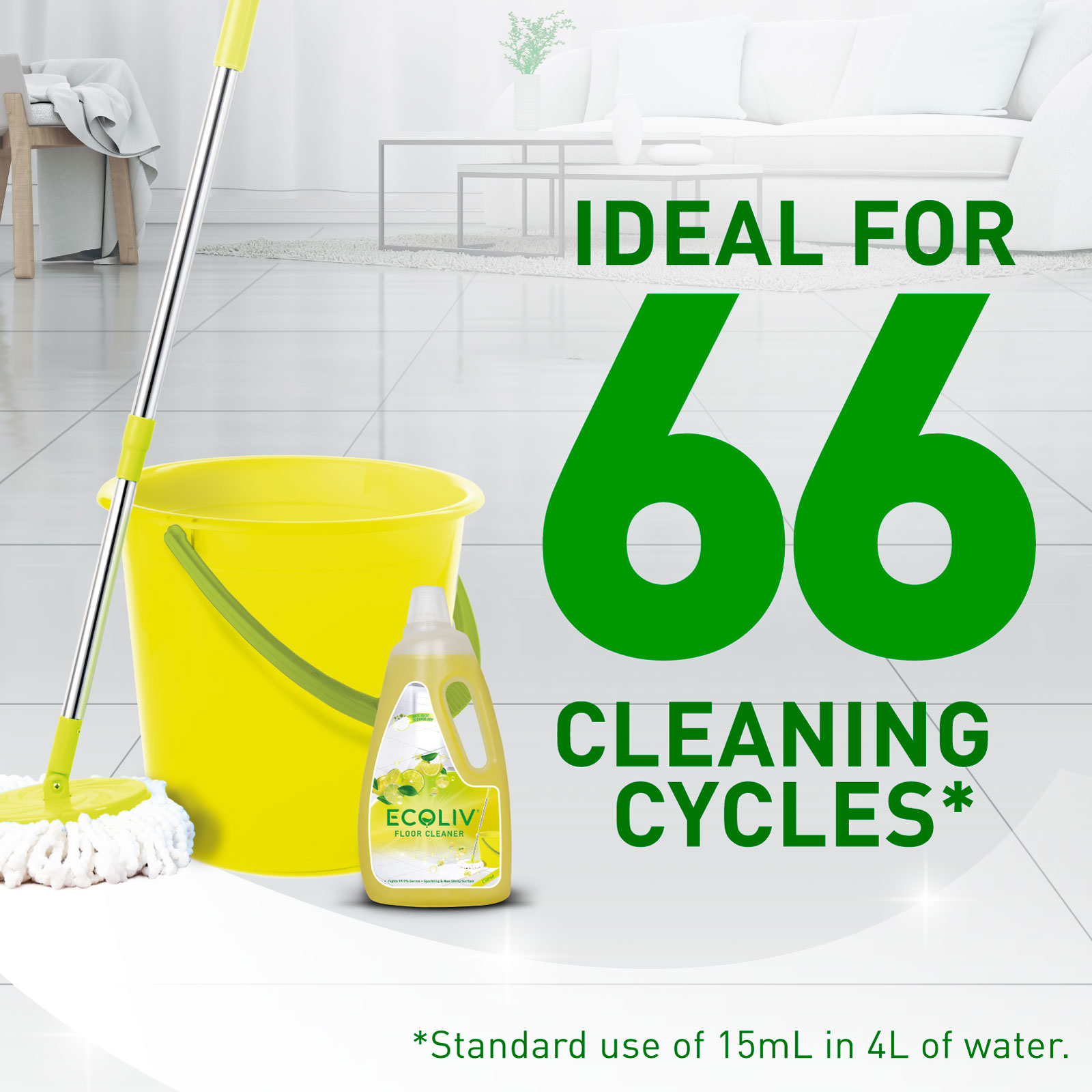 Ecoliv Natural Floor Cleaner | 1 Litre (PACK OF 2)| Refreshing Fragrance of Citurs | Fights 99.99% Germs| Sparkling Clean and Non-Sticky